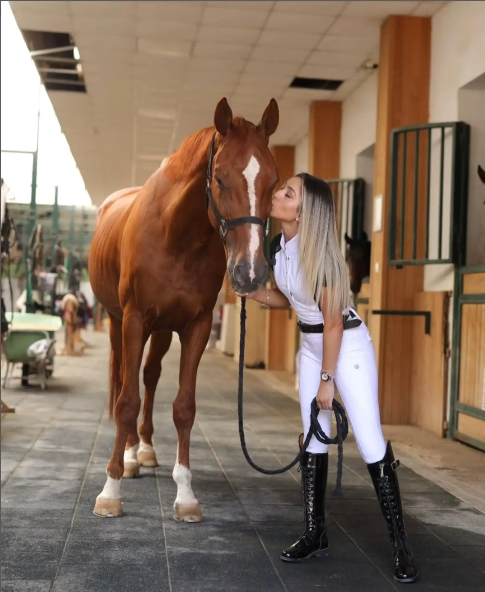 Make a statement in the saddle by being bold and fashion-forward. Designed for equestrians who refuse to blend in, this set combines high-performance functionality with an edgy, modern aesthetic. The sleek, athletic silhouette offers superior comfort and mobility, while the striking color contrasts and dynamic details ensure you stand out—both in and out of the arena. If you’re looking for a riding outfit as bold and confident as you are, this is it.